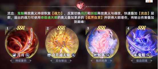 邪月+菊花+鬼魅+控制武魂(狐狸或者比比东最佳)主输出:邪月手法:先叠加自己的月刃印记,达到三层以后输出最大化,通过持续的普攻打出大量伤害并回血,及时用控制武魂进行控制配合邪月可以打出高额伤害。