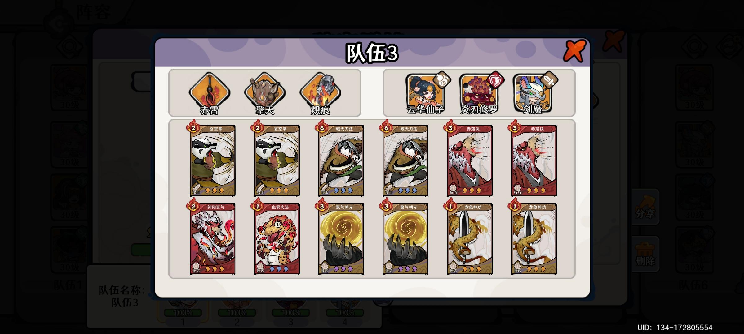 炎刃修罗的3星武学可以给全体单位挂一次灼烧,同时可以给剑魔提供2点攻击增强(0星炎刃无此效果),配合赤焰诀我方有2层以上Debuff时提供2点怒气回复,则可以做到实际花费1点怒气过了3张牌,同时给剑魔提供了300%的倍率。2点攻击增强配合火系的血雾大法基本可以保证剑魔常驻20%的攻击加成。