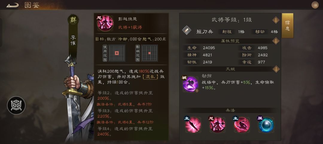 李榷:职业:刀盾兵,综合评价:4星