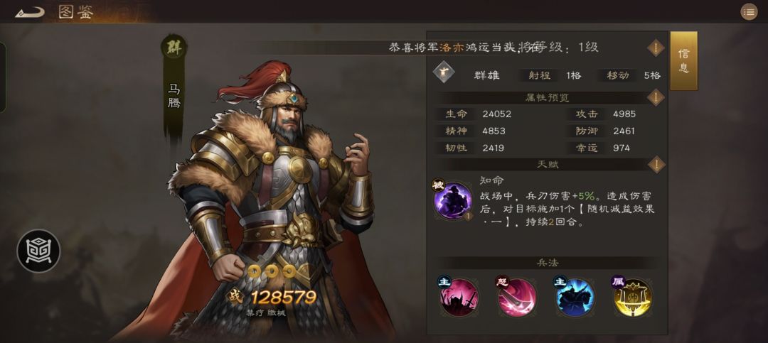 马腾:职业:君主. 综合评价:5星+!