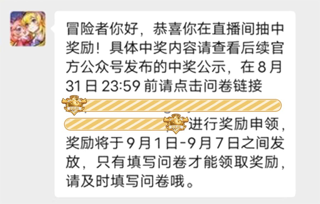 5、在私信界面内,点击官方私信发送的问卷链接进行奖励申领,问卷将于8月31日23:59截止征集,过期未填写问卷则无法领取奖励。