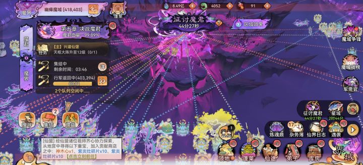 阶段三就是攻打魔宗,召唤仙域伙伴商量好一起去攻打一片区域的宗门pa大宗门分数更多材料更好,记得换上破阵飞舟装备