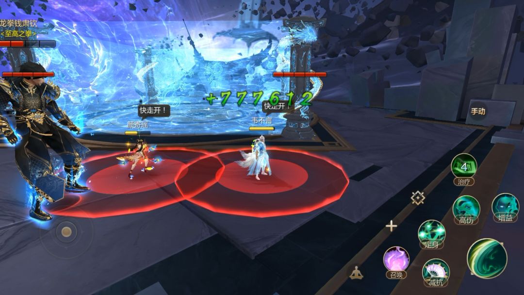 应对方法:当BOSS选中一名玩家后,其余未被点名的玩家技能盘将新增技能【守护队友】,此时未被选中玩家需尽快赶到选中队友与BOSS之间使用新增技能,即可成功为队友格挡伤害。