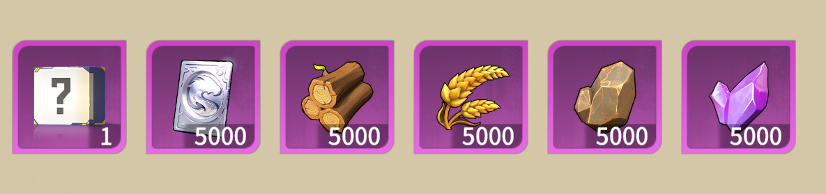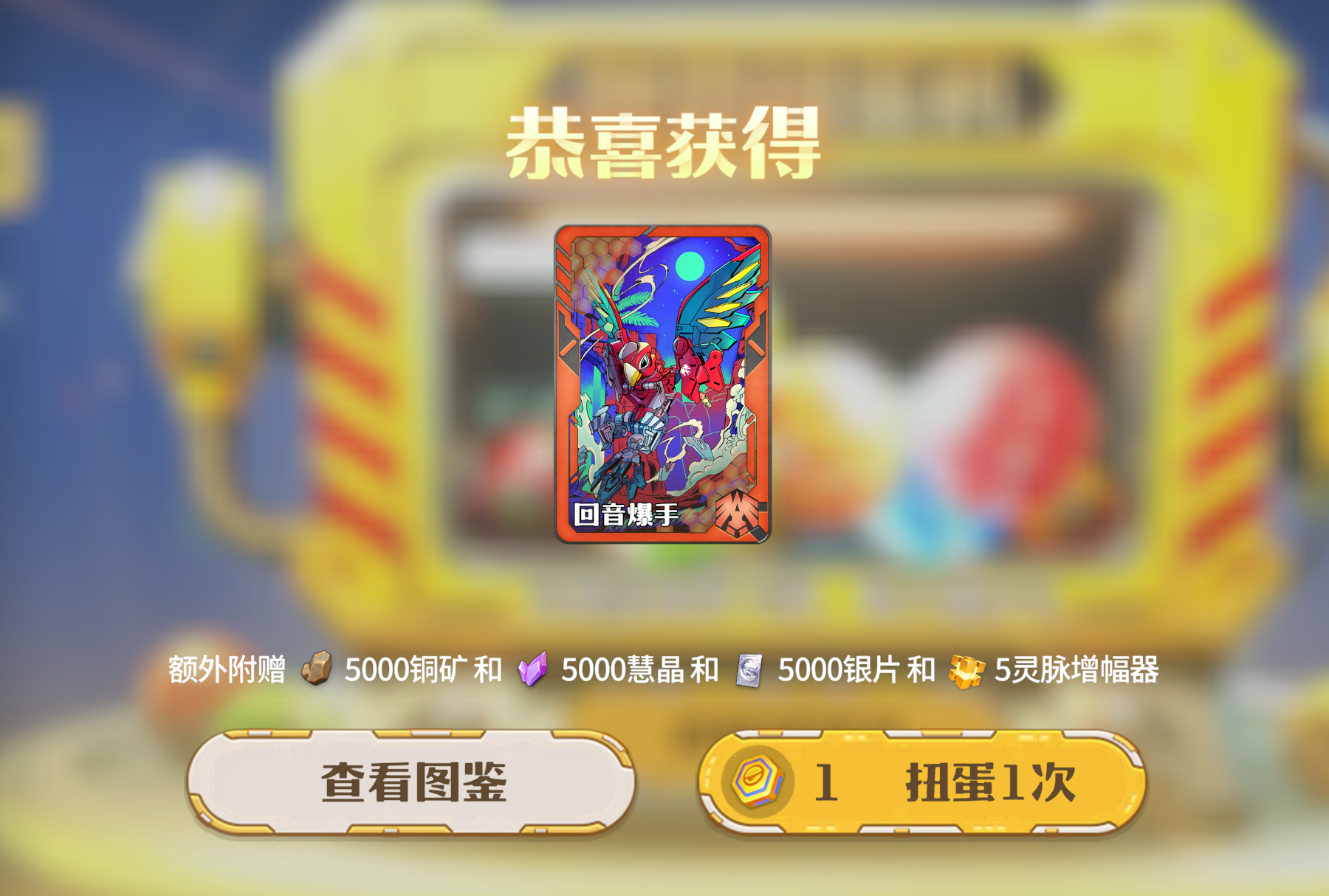 主要做匣兽集卡会这个任务,完成任务就可以扭蛋,每次扭蛋,除了给张卡,还给一堆资源。比如5000铜矿、5000慧晶,约等于打了一关远征和烽火,一天可以抽很多次,资源超级多。