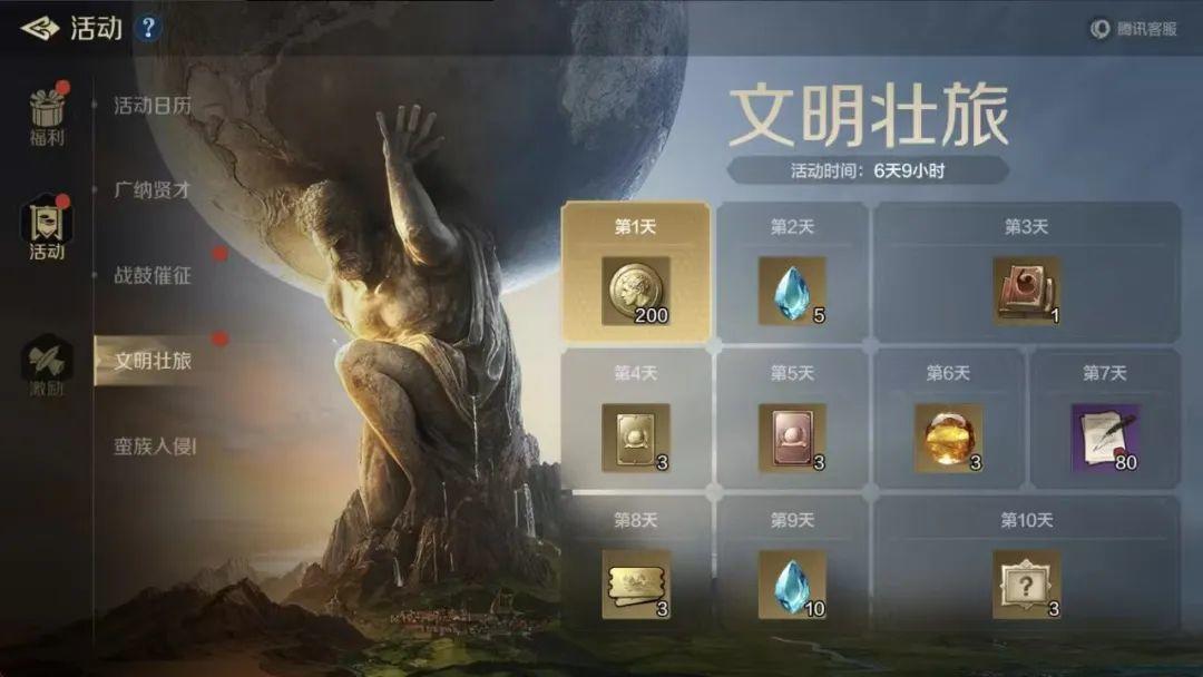 活动地址:通过游戏主界面右上角「活动」-「文明壮旅」参与;