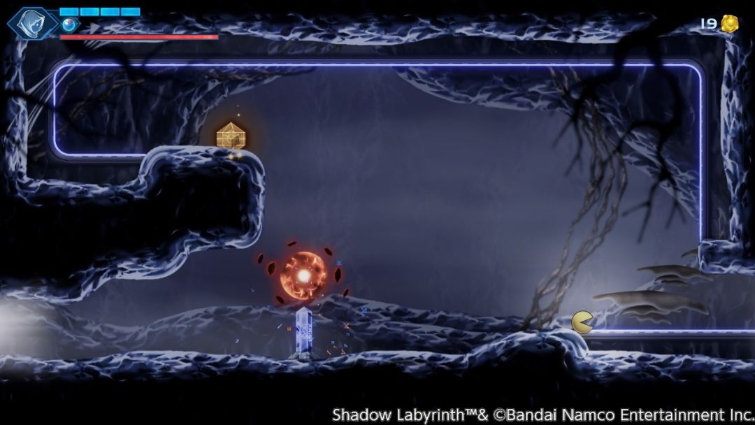 在一些特殊地段(有管道的地方)你还可以化身为吃豆人,这时候角色会自动沿着墙壁或特定路线前进,而你只需要专注控制跳跃来躲避路上的敌人,瞬间找回经典吃豆人的紧张感,不过你也可以用攻击键瞬间变回剑士8号向敌人发起攻击。
