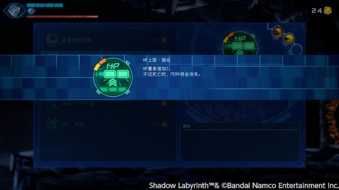 拿到这些素材可以去商人那里花点小钱购买强化插件,比如获得临时血量、敌人HP显血、降低闪避所需的耐力消耗等等。