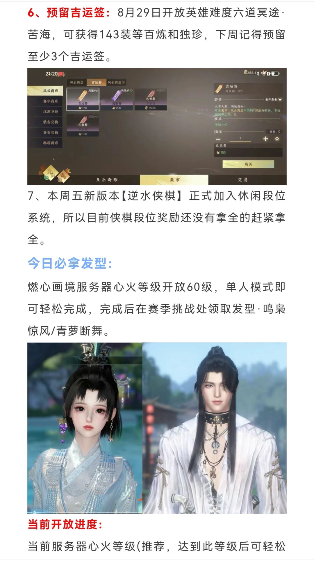 逆水寒本周最后4天必看预留,今天必拿免费发型,师徒专属双人登录动作,【燃心画境】全新关卡,燃心画境也将体验优化!