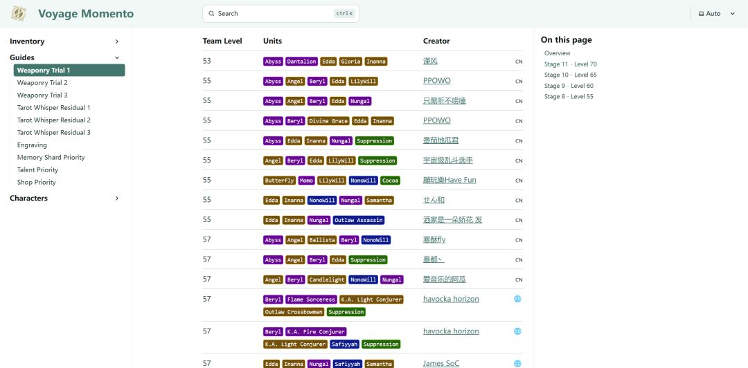 由国际服玩家建立的攻略资料库,整合了多方精华内容。不仅收录了详尽的角色与物品图鉴,还包含神兵本、塔罗本、天赋本等新手关卡的全方位解析。此外,在每个角色、物品或关卡图鉴下方,都附有来自各服玩家的通关视频与参考资料。该资料库目前已暂停更新。
