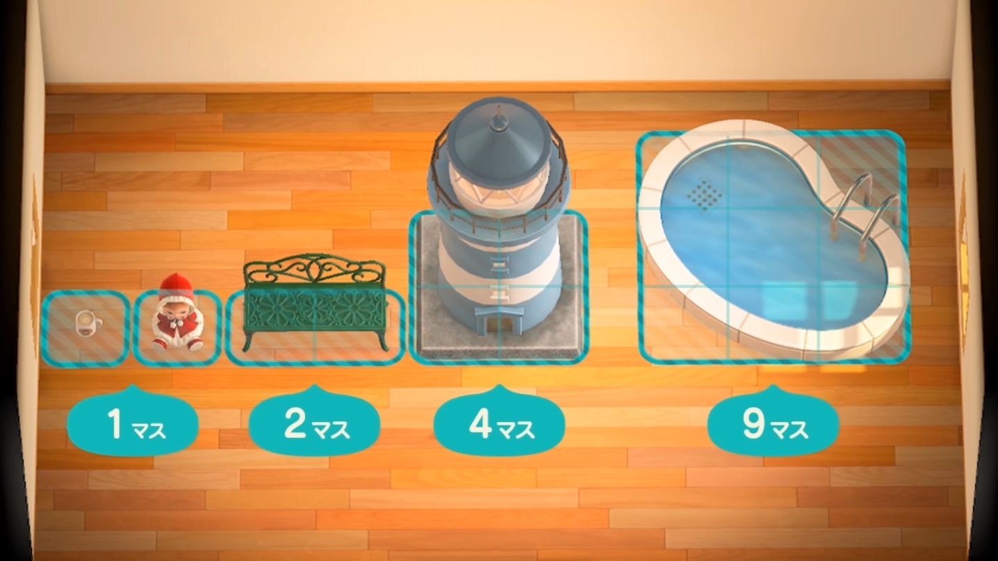 家具中既有直径10cm左右的茶杯和人偶,也有数十米的灯塔和泳池(虽然很难说这算不算家具),尺寸上可以说是应有尽有。如果全按照现实中的尺寸做进游戏肯定不现实。