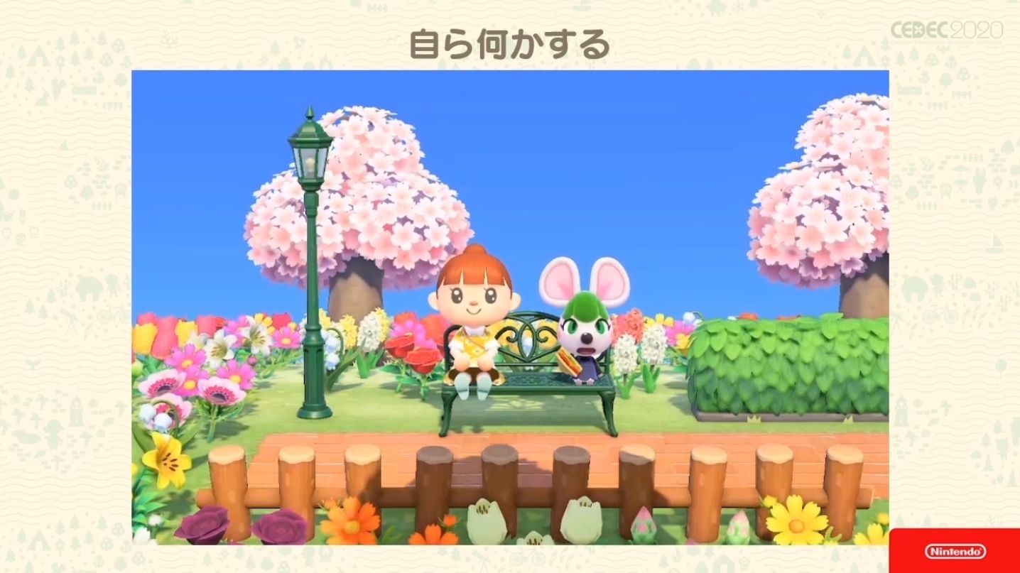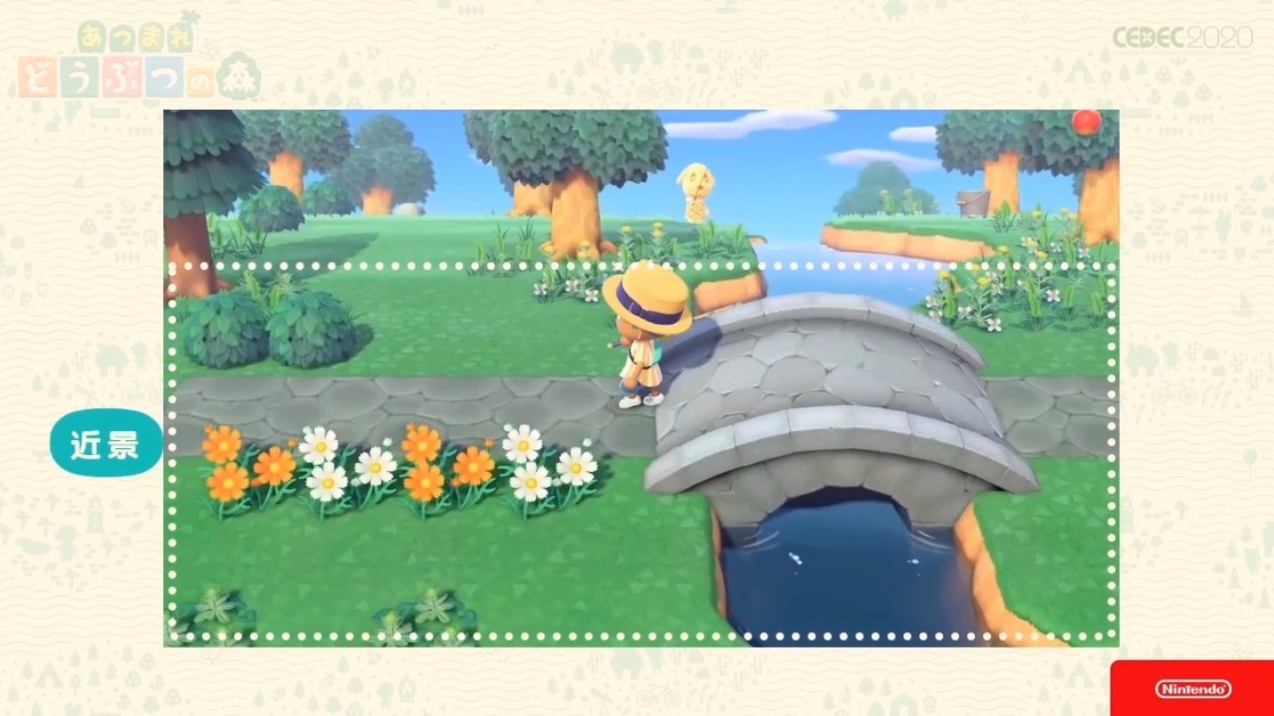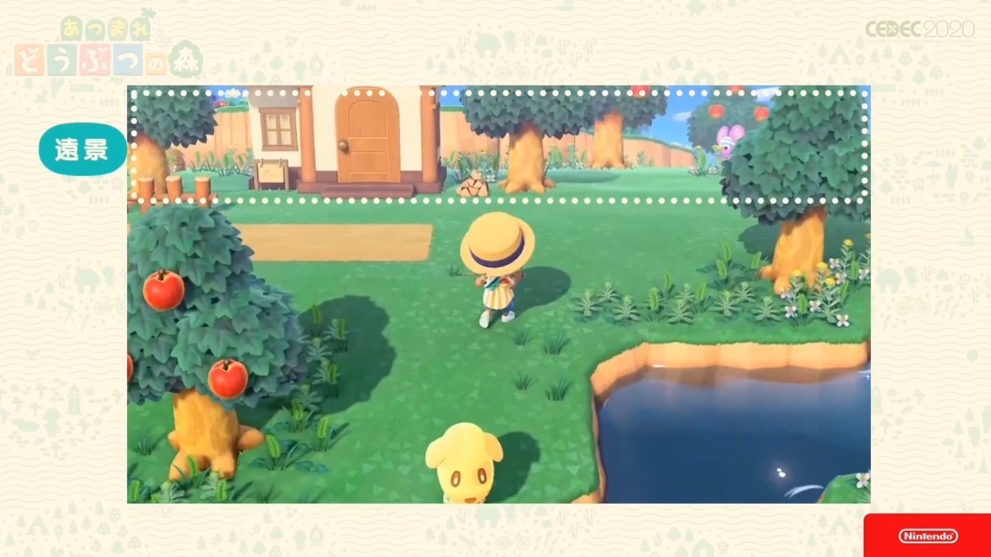 说白了,除了天空以外都是可玩部分。像这样让可玩部分充满整个画面,对动物之森来说非常重要。因此,如何让屋外场景中的可玩要素能够迅速抓住玩家的眼球,也成为了制作组需要克服的难题。