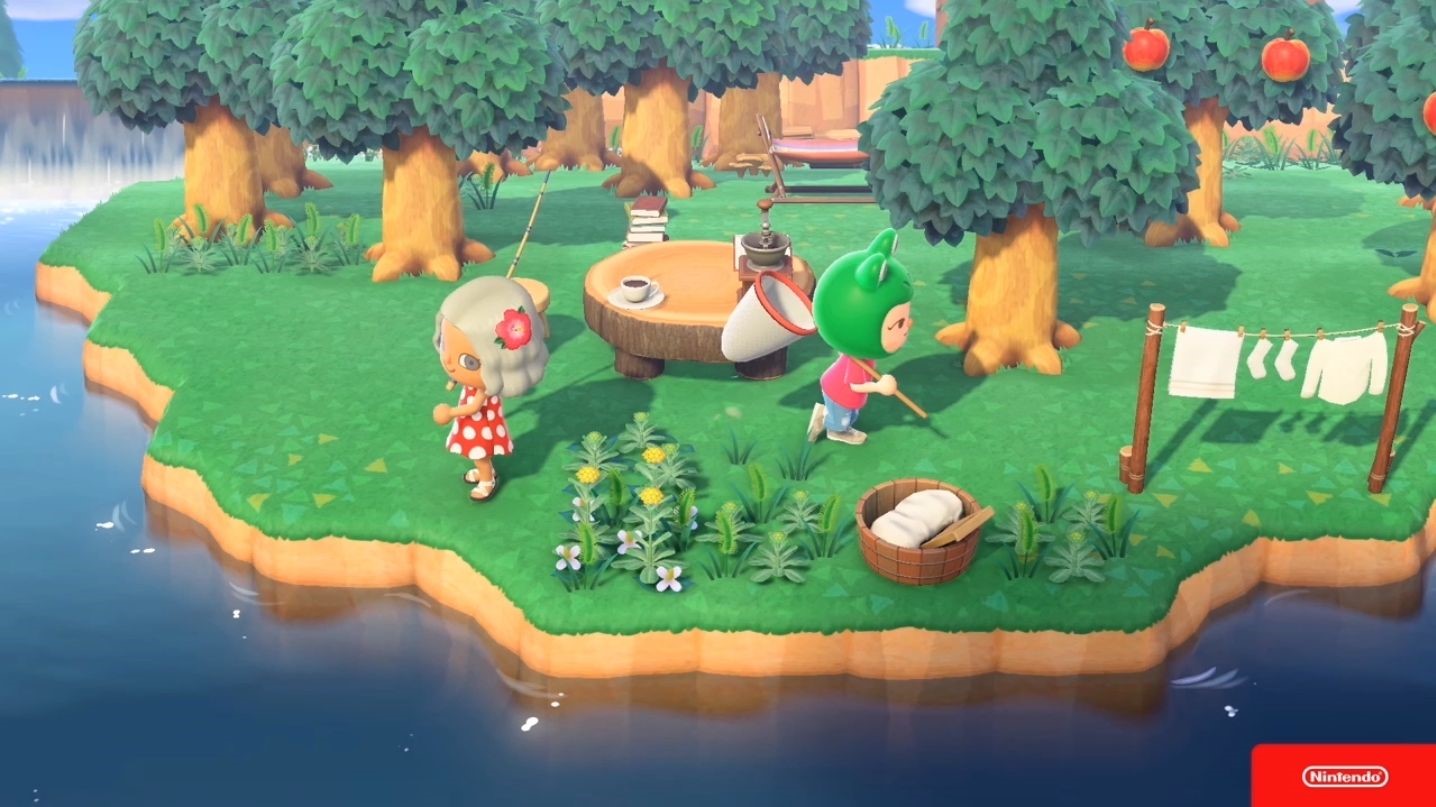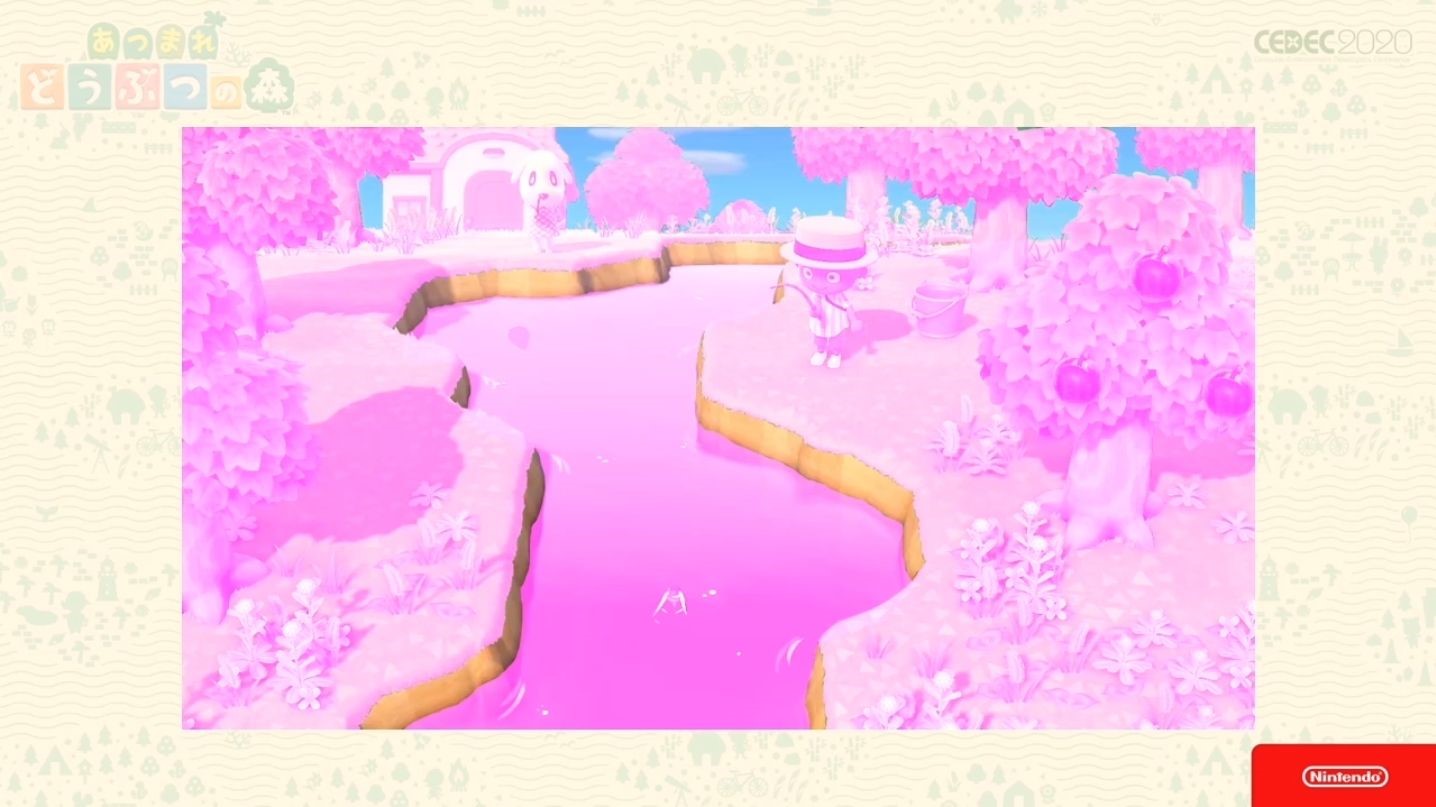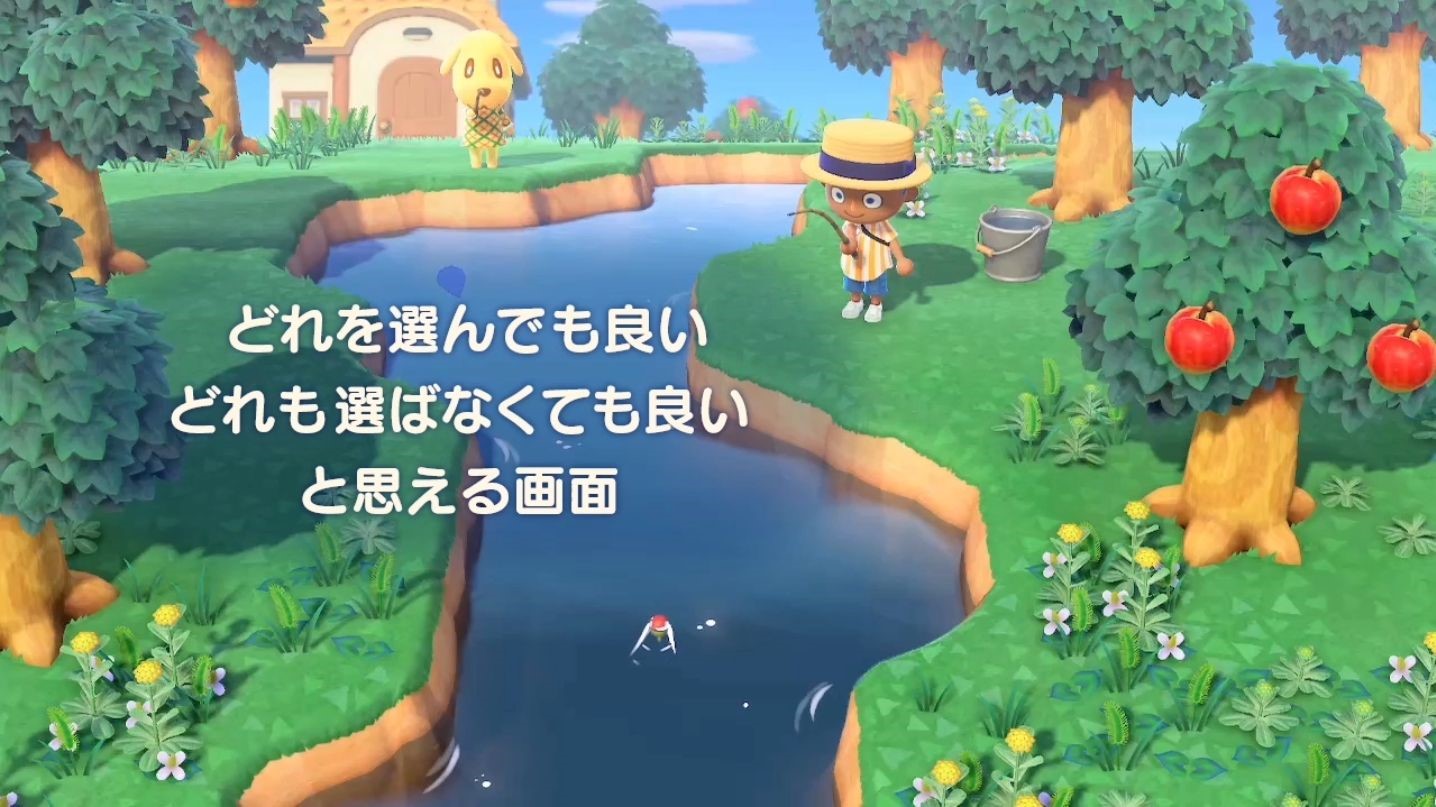 说白了,除了天空以外都是可玩部分。像这样让可玩部分充满整个画面,对动物之森来说非常重要。因此,如何让屋外场景中的可玩要素能够迅速抓住玩家的眼球,也成为了制作组需要克服的难题。