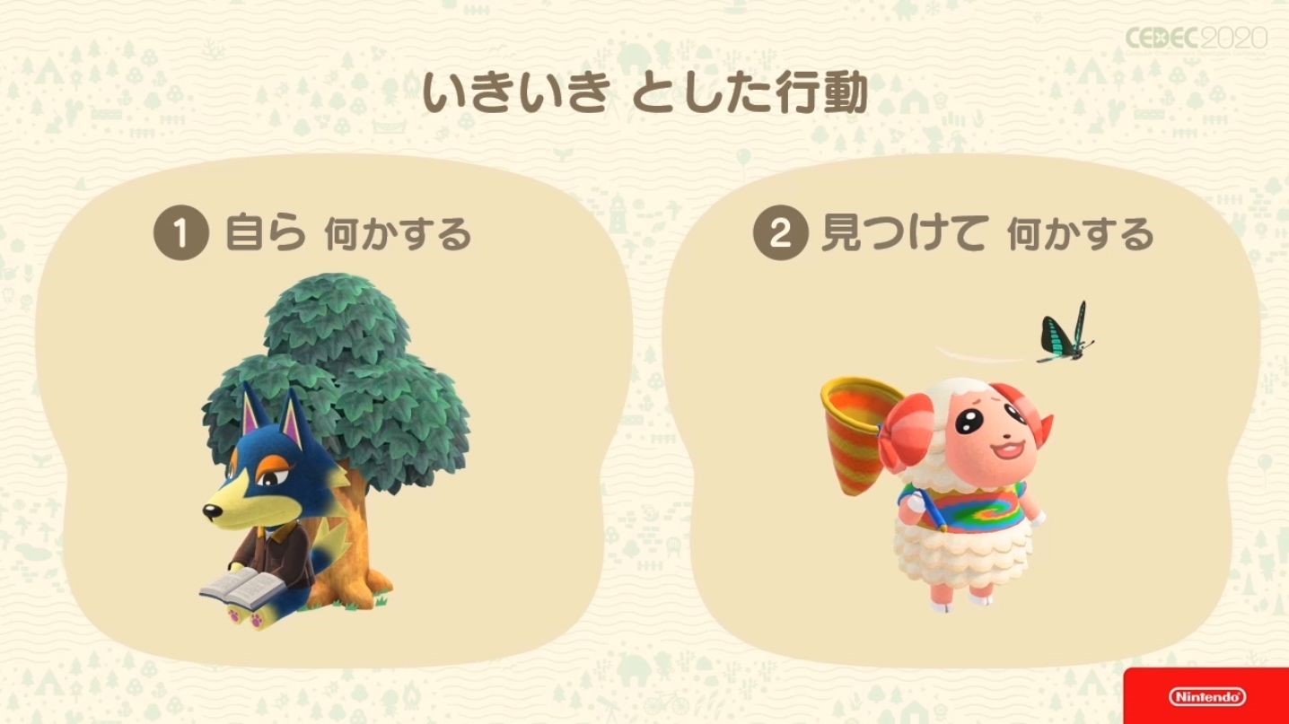 接下来对于让人一直想看下去的栩栩如生的行动进行说明。为了创作出令人感到亲近的角色,不能让动作显得机械化,而需要用栩栩如生的行动让玩家们在岛上共同生活时产生亲近感。