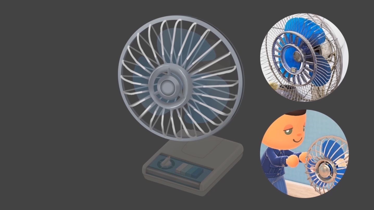 像这样把电风扇设计中共通的细节特征融合到设计中,就能产生令人信服的“相似程度”。当然除此以外,不仅要在游戏中再现电风扇的各种细节,还需要令人产生“对对,好像以前的电风扇就是这个样子的”这种怀旧的想法,为玩家们的想象留下空间。
