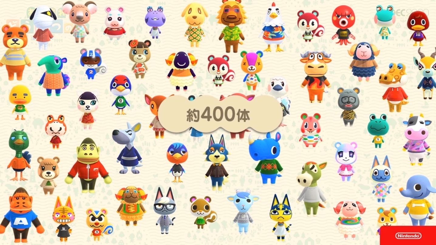 动物角色的总数约为400个,通过庞大的数量来实现每个玩家的岛上居住的动物不尽相同,同时也促进了“希望别人也能看到自己家可爱的动物们”这一想法所产生的的交流互动。