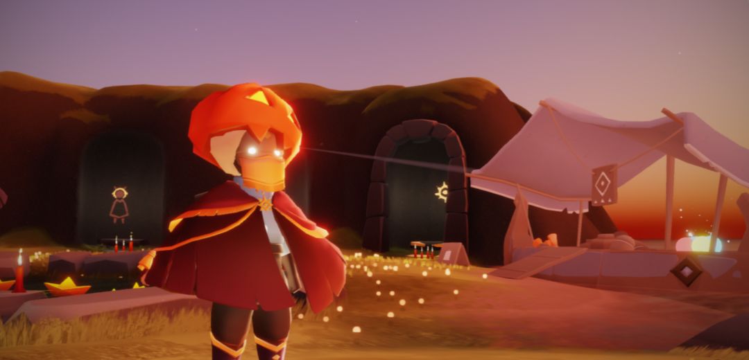 返场先祖在:暮土方舟图,有光翼的螃蟹洞门口,右上方的坡上,托着走的光,从外面一直到洞里水潭旁。