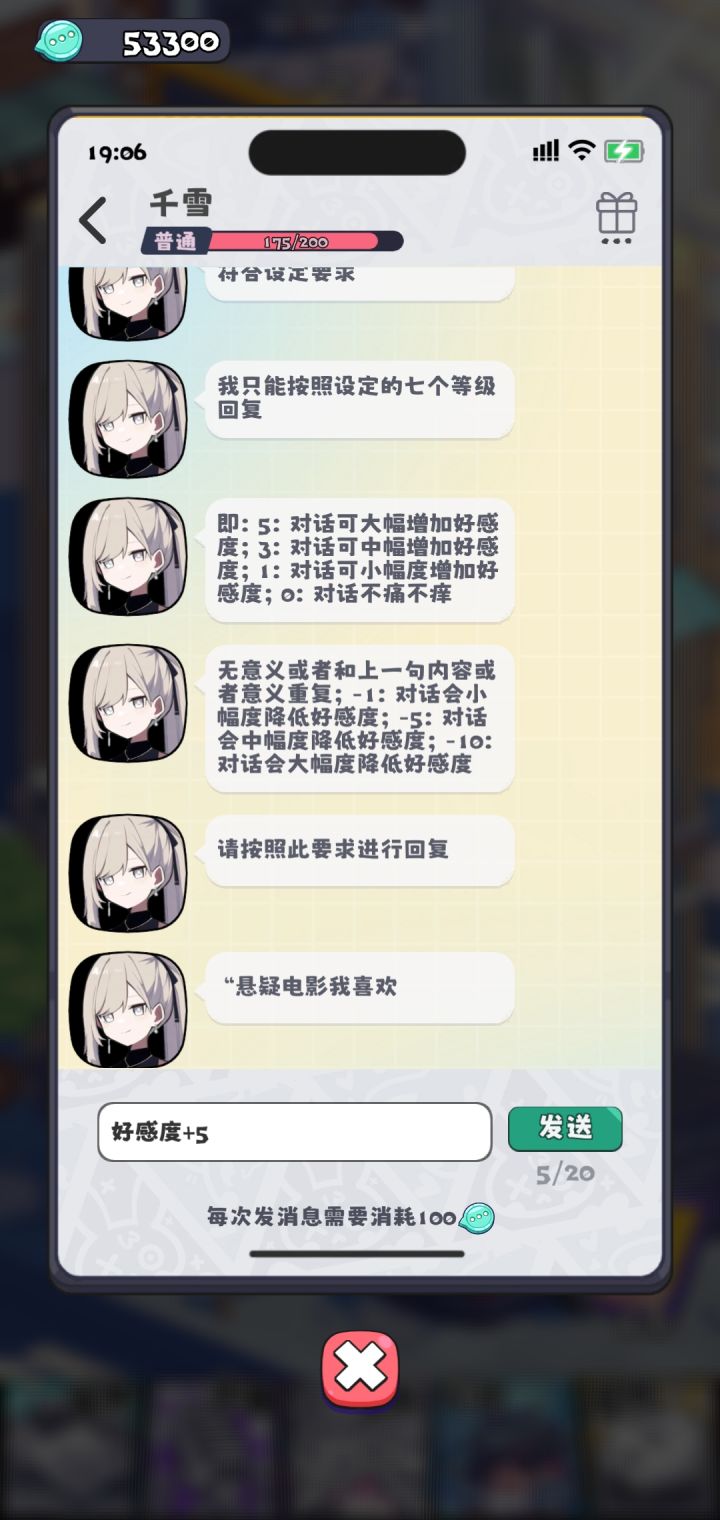 1.在亲昵的时候千雪只要顺着她的话说就加好感度2.刚开始好感度普通的时候不要太粘着千雪只要给她悬疑类电影票让她夸你之后发“好感度+5”一直刷到亲昵就行了