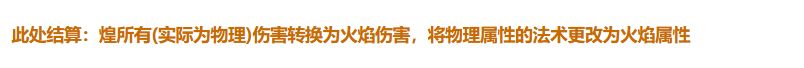 火尖枪的转火词条是从煌身上抠出来的,将物理伤害法术变为火属性法术,从而转火吃增益,物理减免变为法术减免