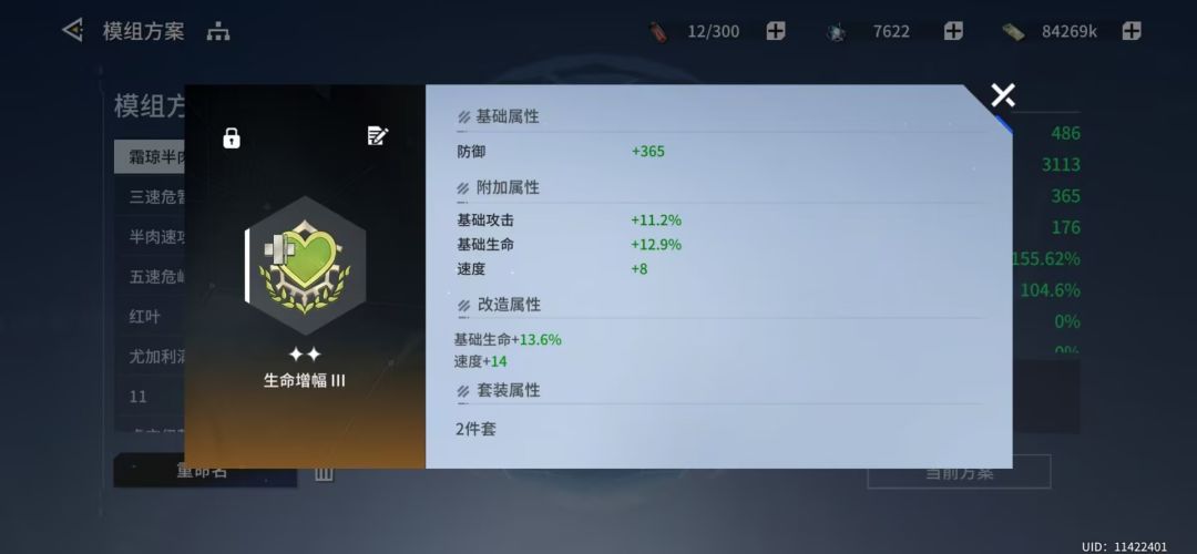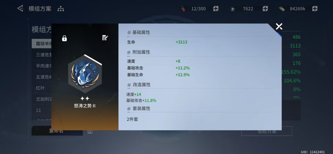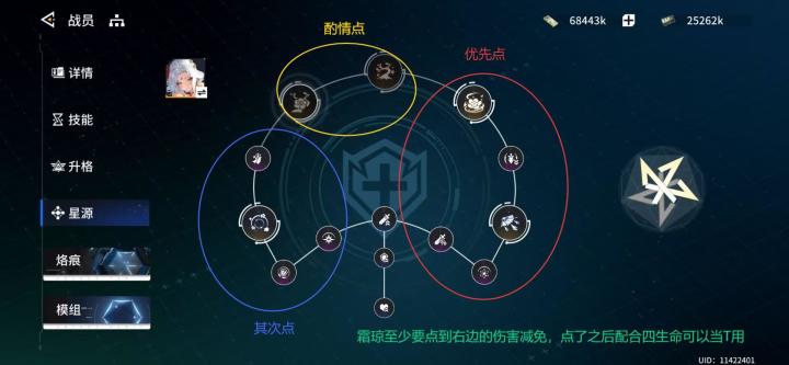 能点到星源右边的伤害减免就首推四生命两怒涛,模组见配图。也有四森罗两怒涛或者四怒涛两基础攻击的配置,但是偏向团体加攻,在作为速攻队辅助时的容错低于四生命,四生命可以直接作为前排使用,50多减免加上0.9伤害降低很肉,基本不怕AOE伤害。