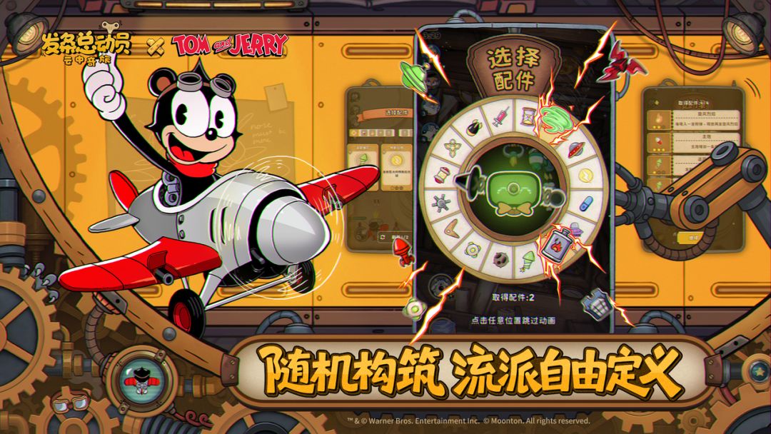 《发条总动员》以复古蒸汽美学构建奇幻云海战场,艾克驾驭烈焰吞噬弹幕,查理召唤十犬军团撕裂敌阵,阿梅莉亚电磁双刃切割长空,艾隆阿姆化身龙卷风横扫千军,乔伊化身钻头狂魔洞穿钢铁洪流!