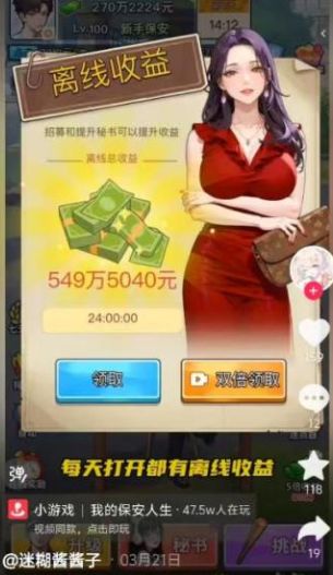 这种叙事一般会给主人公一个困境来激发玩家的共鸣。比如女主角有老公出轨、辞掉大城市的工作回到家乡、复仇等叙事。男主角有50w彩礼、被索赔50w等叙事。