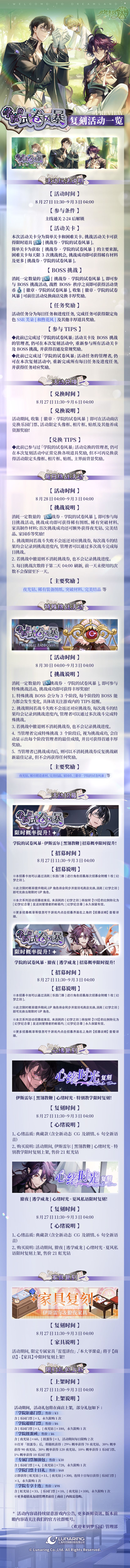 「学院的试卷风暴」复刻活动将于8月27日开启,点击下方长图,即可查看详情一览↓↓↓