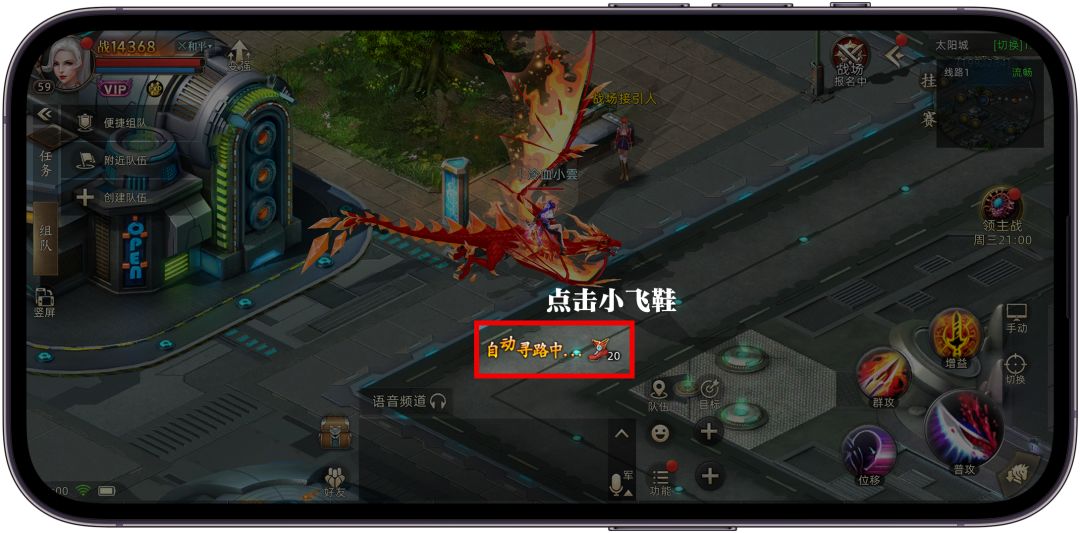 点击相关任务或在地图中点击目的地,人物即可直接寻路到相应地点。自动寻路过程中可以点击人物下方的小飞鞋即可瞬间到达目的地。
