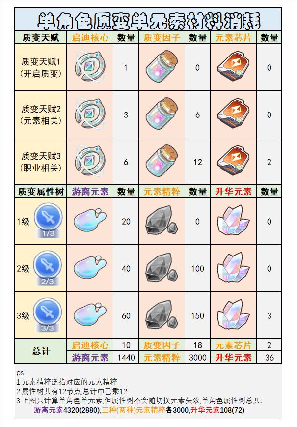 2.质变天赋与质变属性树材料消耗图