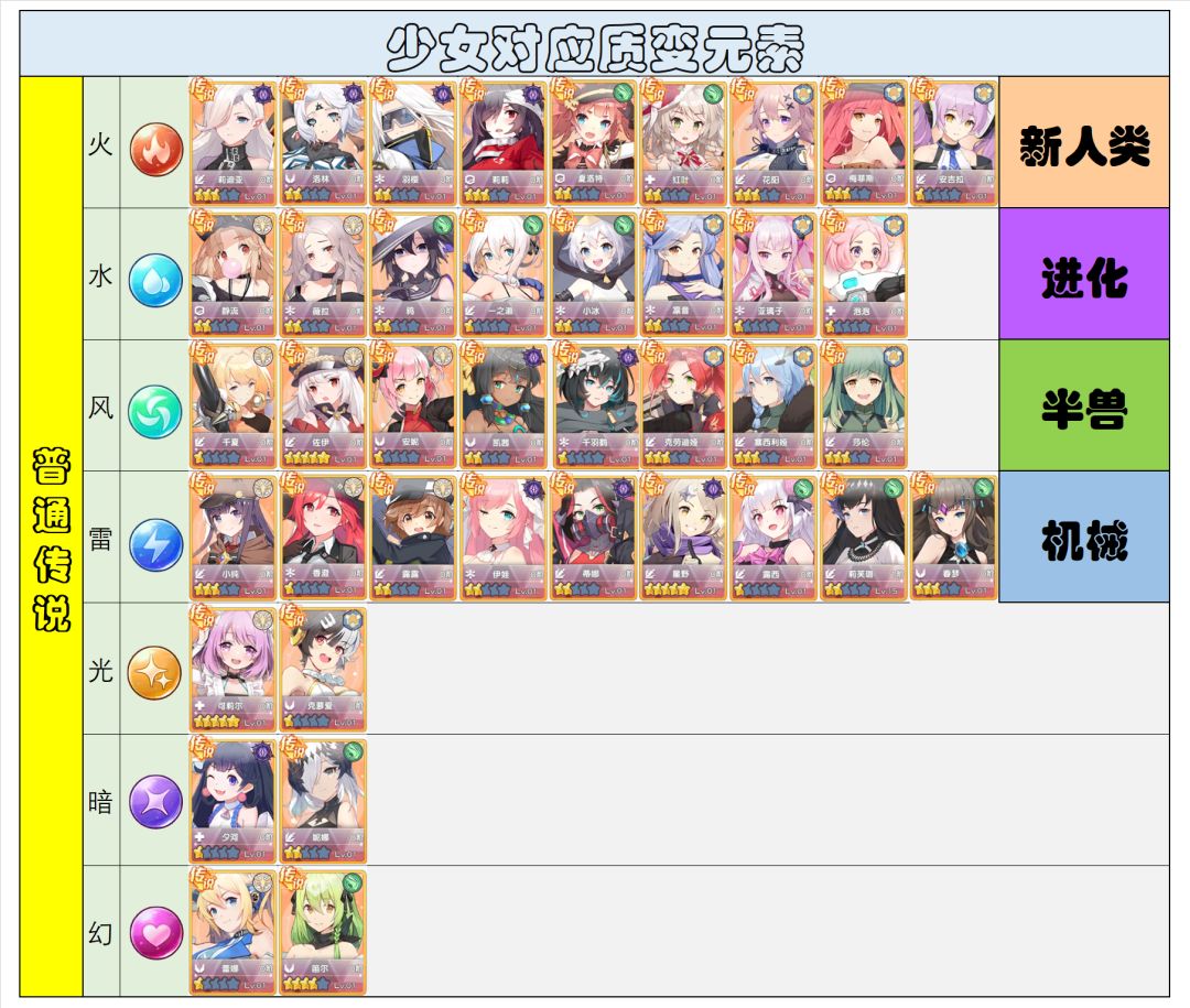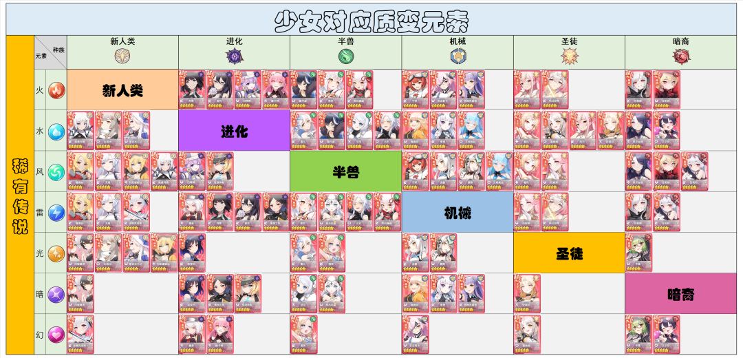 图1:稀有传说少女对应元素