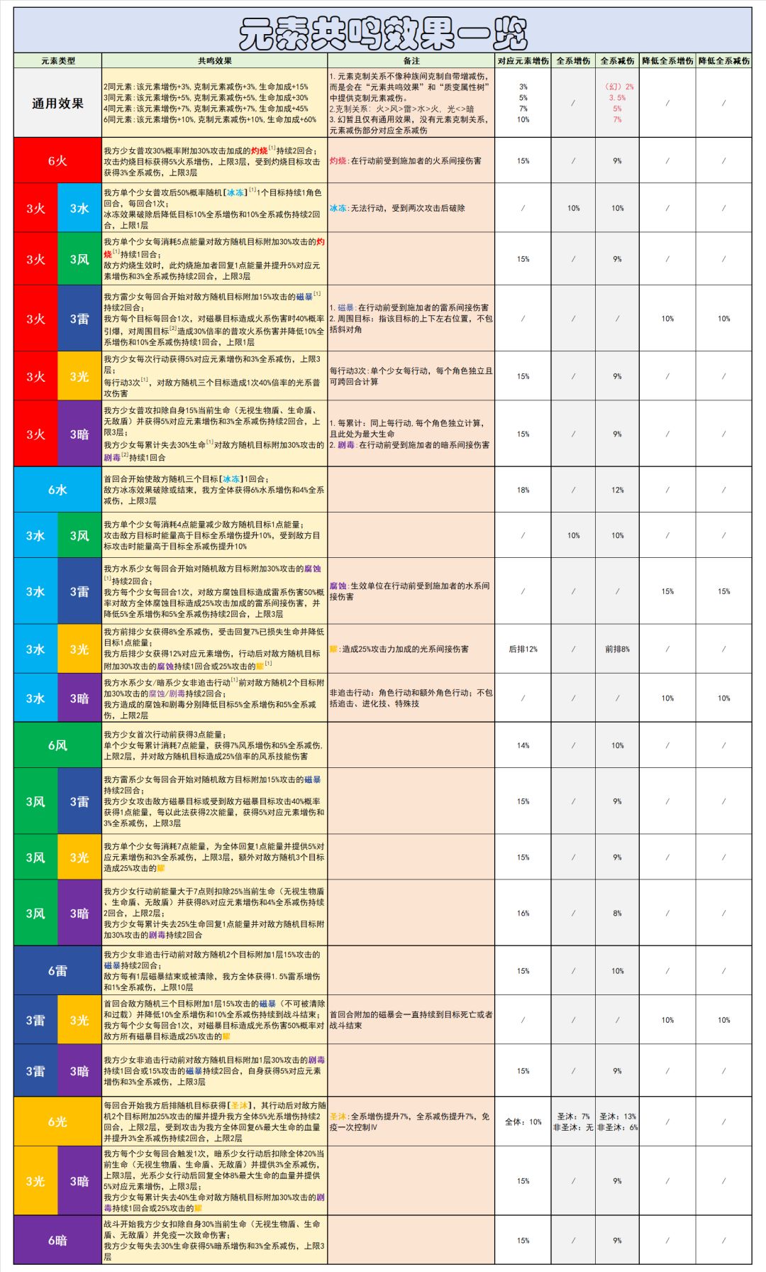 附录Ⅰ:少女对应元素/养成材料消耗/共鸣效果图