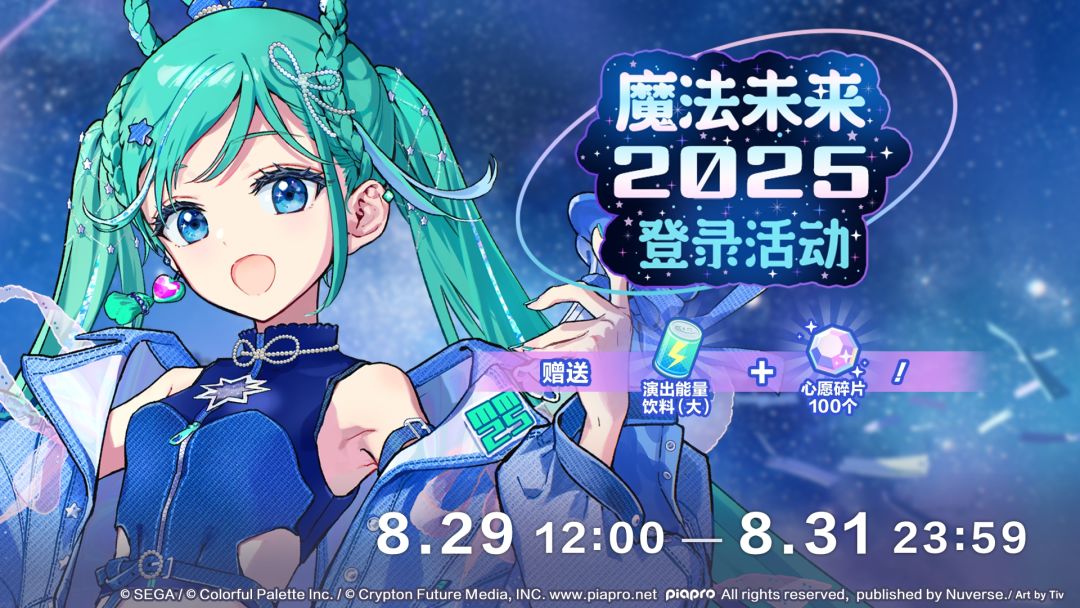 8/29 12:00 起,游戏内将新增魔法未来2025登录活动!
