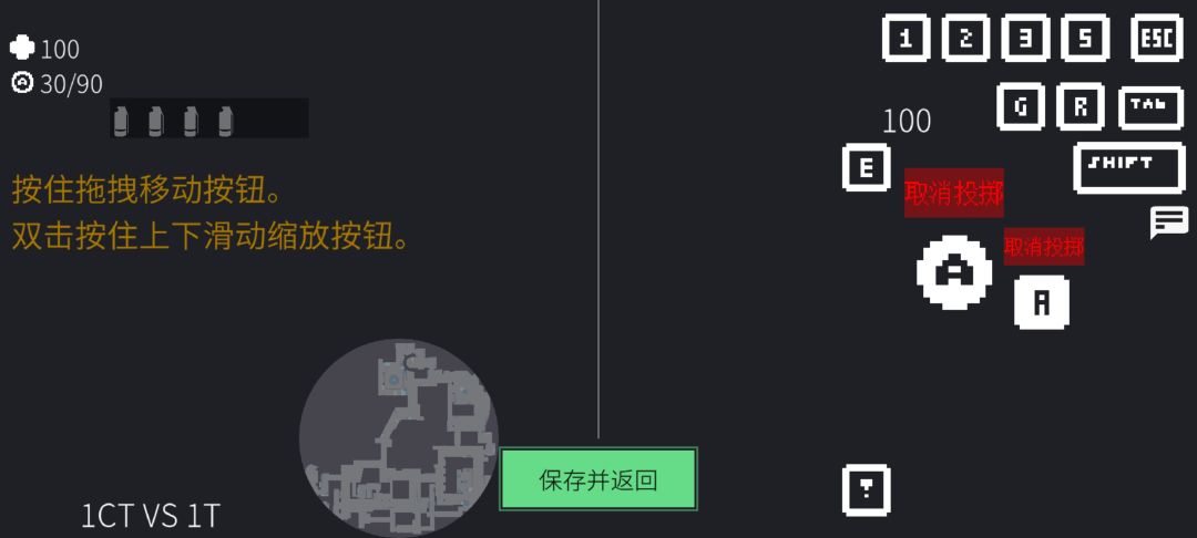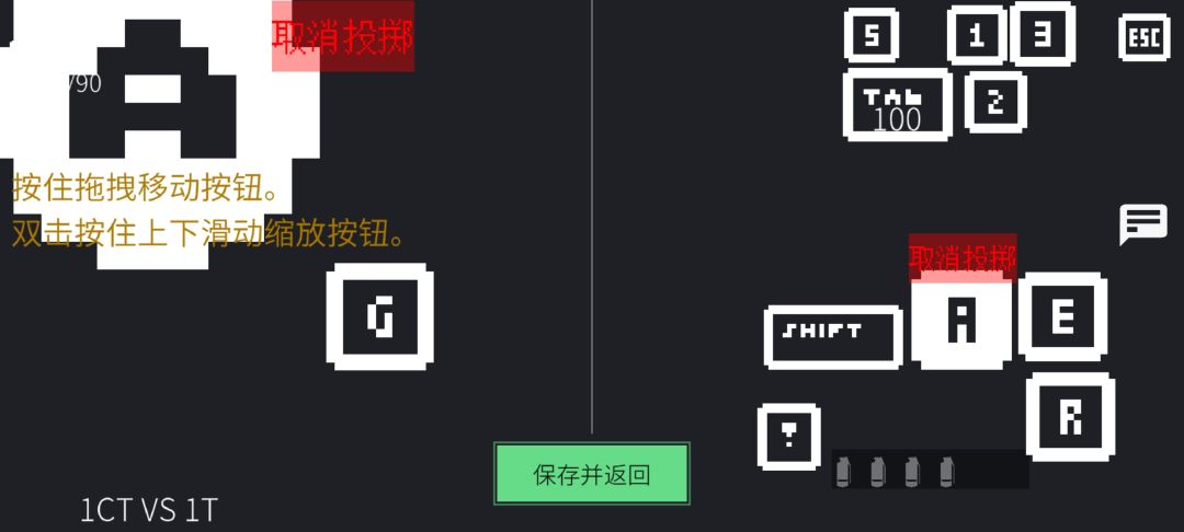 圆A.射击键,如果手上是刀则是轻击键,如果手上是投掷物则是高抛模式(可以通过上下拖拽控制投掷力度)