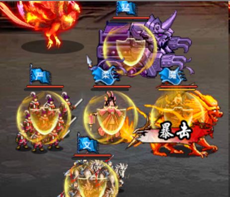 使带有战法技能的武将达到可以发动战法的士气(100),武将身上会有黄色火焰。