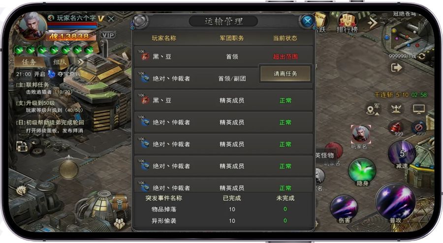 步骤三、参与活动的团员需要在运输车一定范围内跟随,超出范围则运输车无法运行,运输者可将长时间未在附近的玩家请出任务,来让运输车移动。