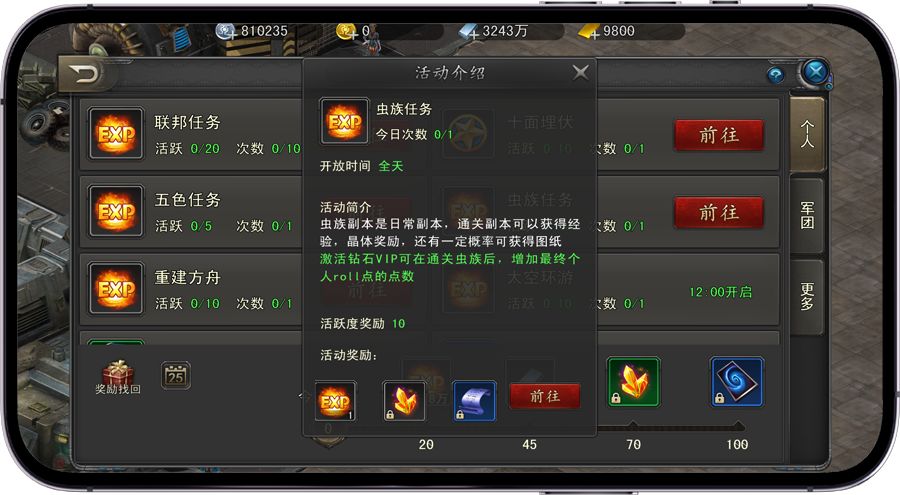 「诺亚传说口袋版」个人玩法>>>虫族任务