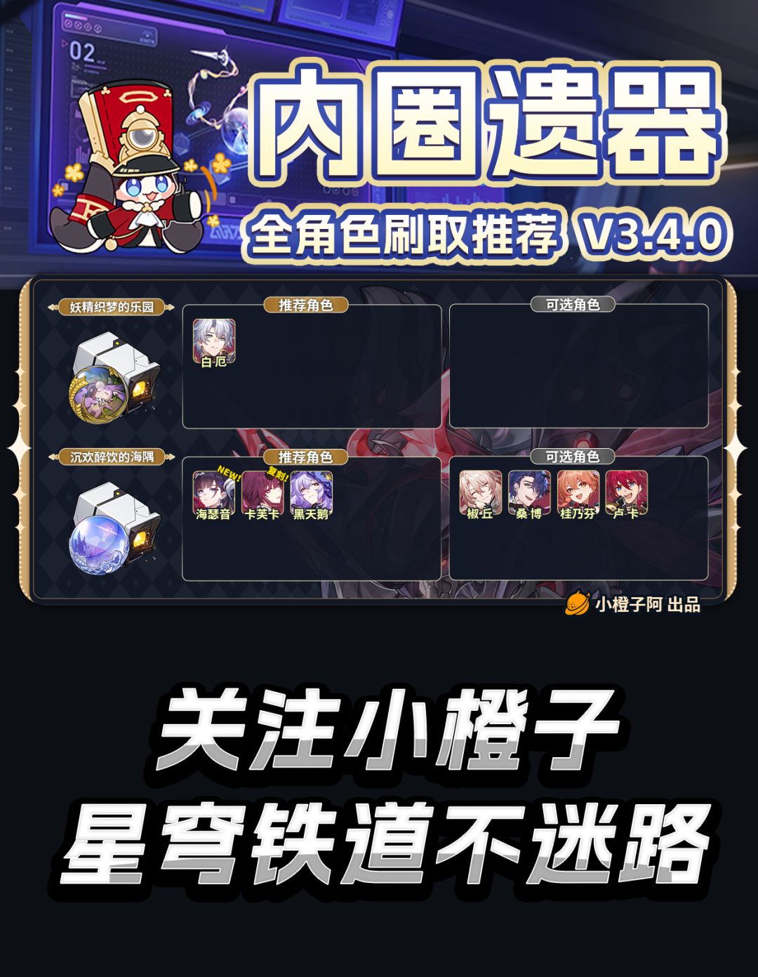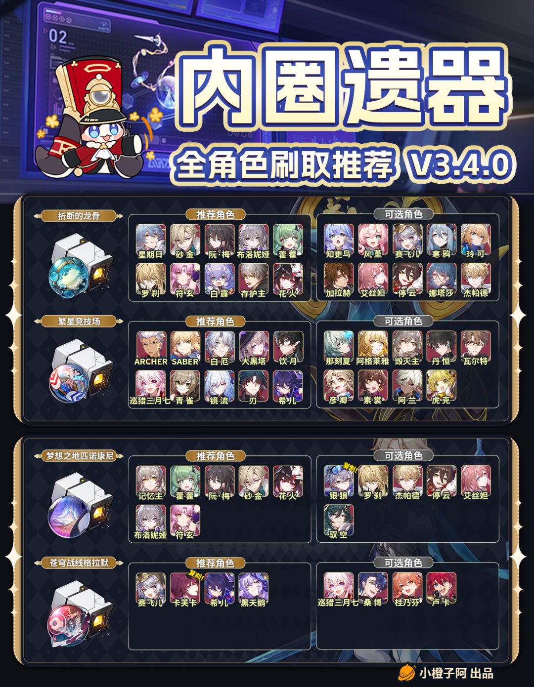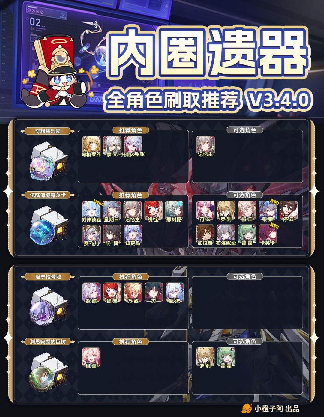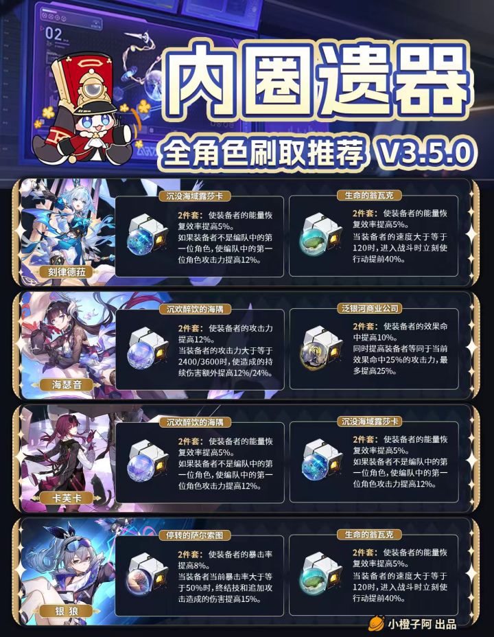 趁着「位面分裂」双倍刷取活动开启,橙子整理了一份内圈遗器刷取攻略,大家可以看看自己想养成的角色刷取什么遗器~