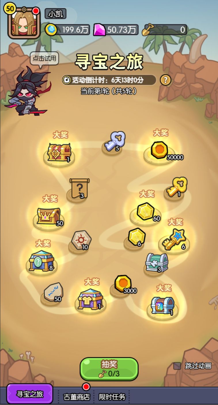 2、限时任务:完成任务可获得寻宝之旅积分,累积积分可获得一系列珍贵奖励。限时任务每日重置,未完成的任务将会永久错过,请城主大大们注意哦。