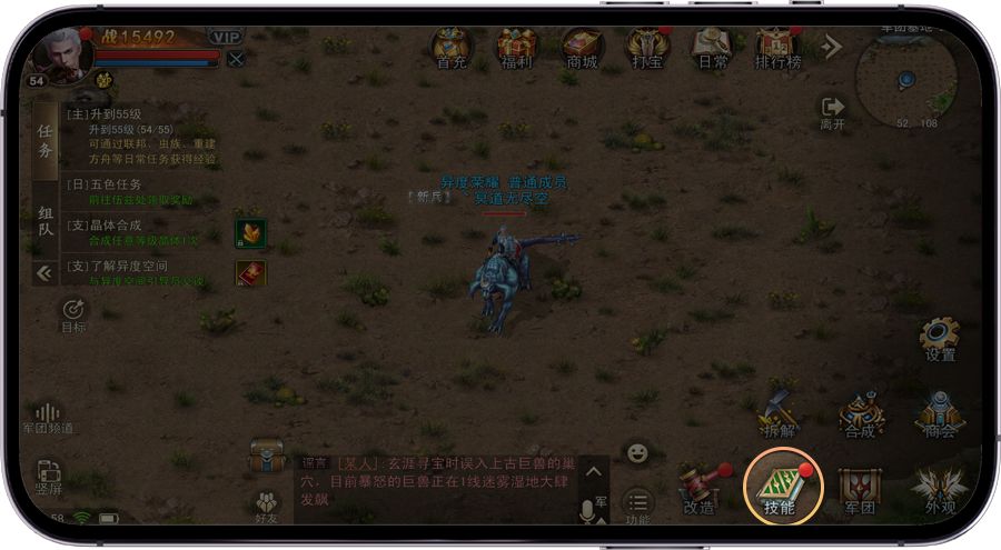 步骤一、玩家可通过游戏右下角功能-技能进入技能升级页面
