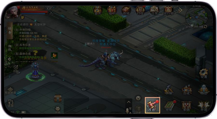 步骤一、通过游戏界面右下角功能-改造-附魔进入装备附魔界面。