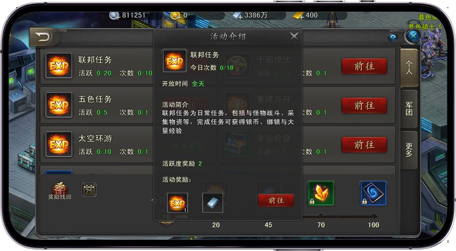 联邦任务奖励丰厚、任务简单,每天只需完成10环任务就可以获得一系列超值奖励。