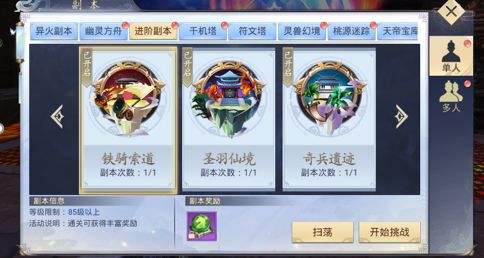 坐骑,翅膀,奇兵,法宝的进阶丹都可以在单人副本的进阶副本活动哦!