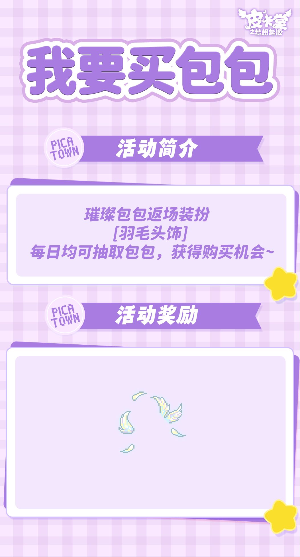 -【我要买包包】璀璨包包返场装扮[羽毛头饰]!每日均可抽取包包,获得购买机会~