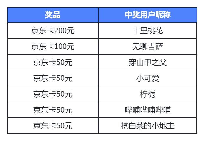 三等奖:50元京东卡(共5名)