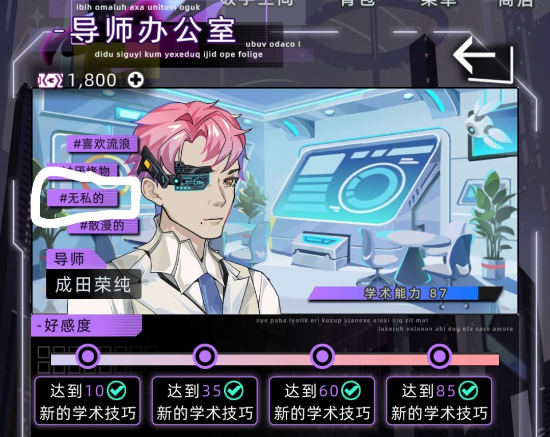 ②请求指导:每年来找导师“请求指导”一次,每次指导获得导师学术能力三倍的学术点数。(性格不好的导师可能会拒绝,但高贵的高级市民可以以德服人)