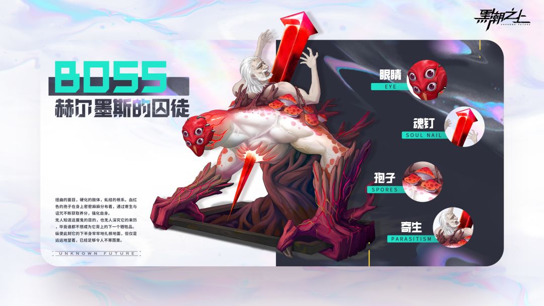 扭曲的面目,硬化的肢体,虬结的根系。血红色的孢子在身上密密麻麻分布着,通过寄生与诅咒不断获取养分,强化自身。