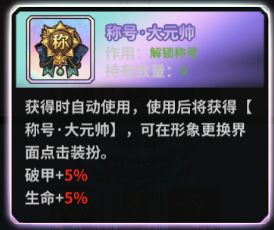 ①限定神话称号:大元帅/联盟统帅/联盟队长(破甲和生命+5%/3%/2%)