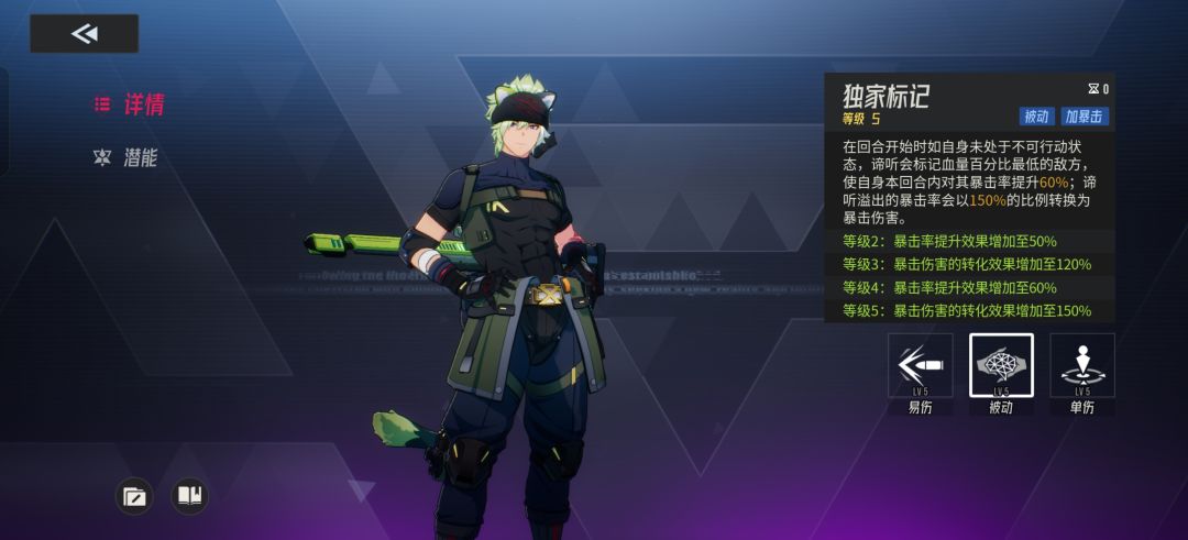 先说总结,谛听的技能数值不低,还有溢出暴击转暴伤,在需要单体输出的环境下非常强力,作为SR异格者获取方式多,十分推荐培养