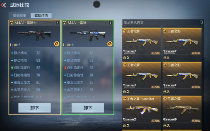 我们将M4A1-黑骑士与M4A1-雷神的对比,M4A1-黑骑士的优势仅体现在点射稳定性方面。其 92 的点射稳定性高于M4A1-雷神,在中远距离单点对枪时,能让玩家更稳定地命中目标,这一优势在远距离需要精准单点的场景中尤为突出。