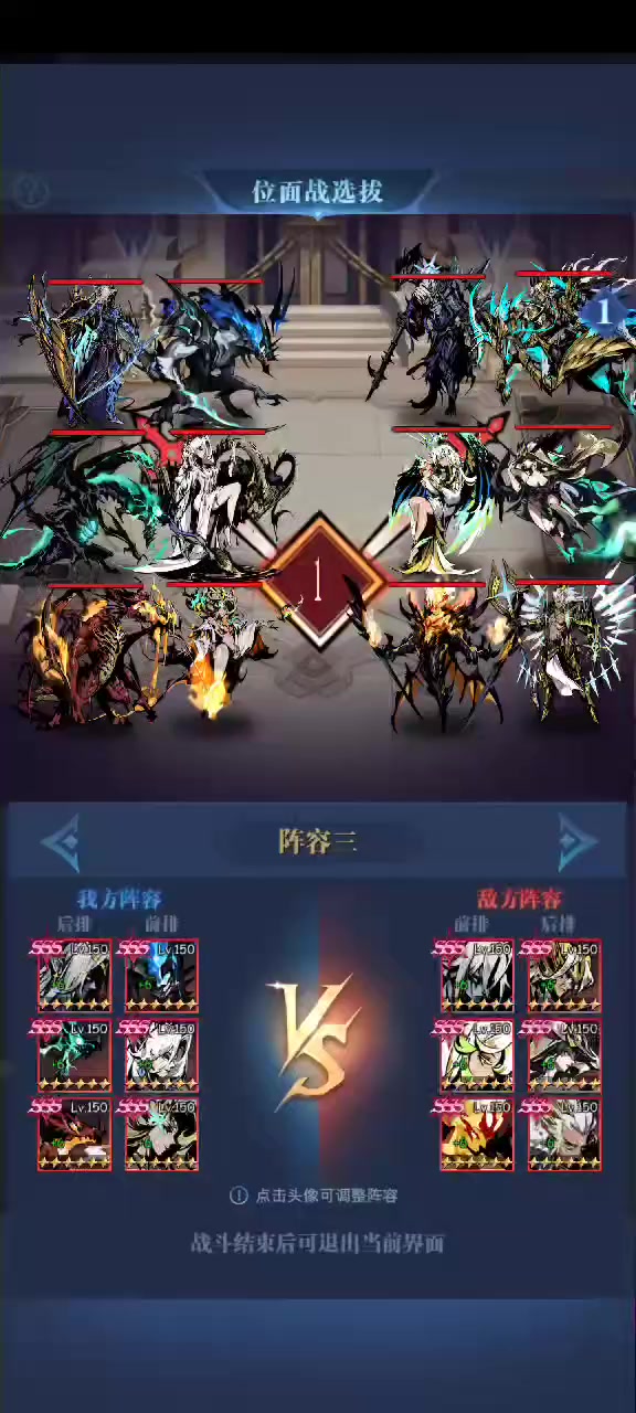 我方通过左边的布阵可拿下胜利,理想获胜过程如下:首先要刷脸我方沃克混乱敌方骨龙,使我方获得速度优势,接下来亡龙一刀劈死半精灵和薇娅,芭芭拉和沃克收尾即可。该站位下刷脸综合成功率=(1/2)^2+(1/2)^3=37.5%