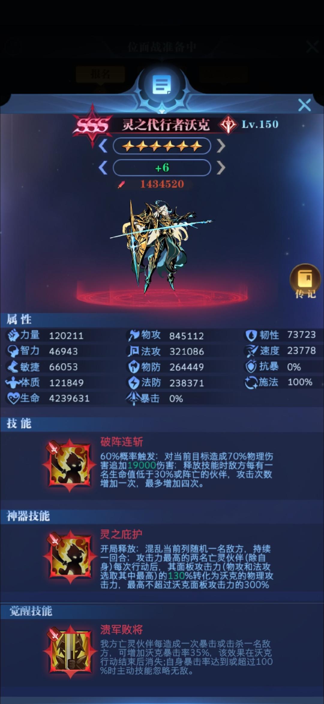 神器技能,分为了两部分。第一个部分是开局释放的混乱,具体效果可以参考亚瑟,区别在于沃克混乱的是对位一列的某个人(重申一遍,这游戏一前一后为一列),相较于亚瑟来说,在某些需要刷脸的战斗中减少了一些随机性。而神器技能的第二个效果则是一个被动,其他亡灵伙伴中,面板攻击力最高的两位(法攻和物攻一起排序),在行动后会将面板攻击力的130%加持给沃克(不管是法攻还是物攻,加给沃克的时候都变成物攻)。面板攻击力就是图1中用红框框起来的部分,不同于战斗中的实时攻击力,面板攻击力是一个固定的数值,也就是说沃克能获得多少攻击,在游戏外都能算出来。